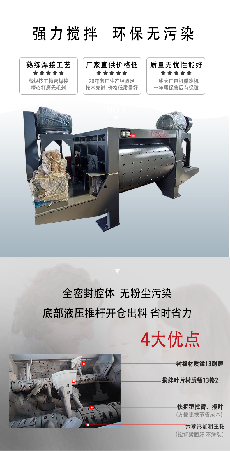 強(qiáng)力混合攪拌機(jī)是采用 U 型槽內(nèi)雙軸螺旋安裝的葉片對物料進(jìn)行連續(xù)攪拌。物料由輸送機(jī)輸送至箱體前端。工作時(shí),機(jī)內(nèi)物料受兩個(gè)相反方向的轉(zhuǎn)子作用,進(jìn)行著復(fù)合運(yùn)動(dòng),槳葉帶動(dòng)物料沿著機(jī)槽內(nèi)壁做向內(nèi)旋轉(zhuǎn),一方面帶動(dòng)物料左右翻動(dòng),在兩轉(zhuǎn)子交叉重疊外形失重區(qū),在此區(qū)域內(nèi),不論物料的形狀、大小、密度如何,都能使物料上浮處于瞬間失重狀態(tài),這使物料在機(jī)槽內(nèi)形成全方位連續(xù)翻動(dòng),互相交錯(cuò)剪切,從而達(dá)到快速柔和混合均勻的效果。物料*終隨著葉片的攪動(dòng)流向箱體底部的出料口出料。